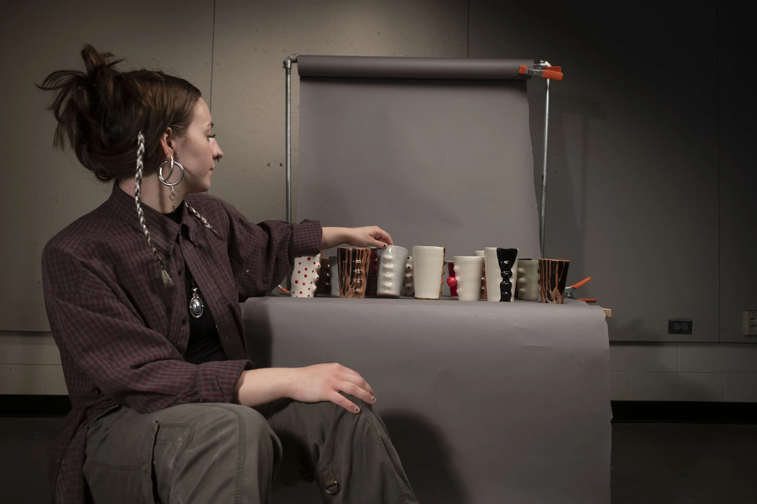 Born in Boston, Massachusetts, in 2004 and raised in Ann Arbor, Michigan, Sophia Sprick’s artistic practice explores clay work as a process of purpose, use, and intention. She is a ceramic and sculptural artist that primarily creates functional, wheel-thrown pottery, embracing the materiality of clay. Her ceramic art explores the intimacy of touch, interaction, visual communication, and the quiet dialogue between maker and object. She is largely guided by clay as a medium drawing inspirations from each step of the material’s transformative journey. For her, clay is more than a medium; it is a vessel of transformation.